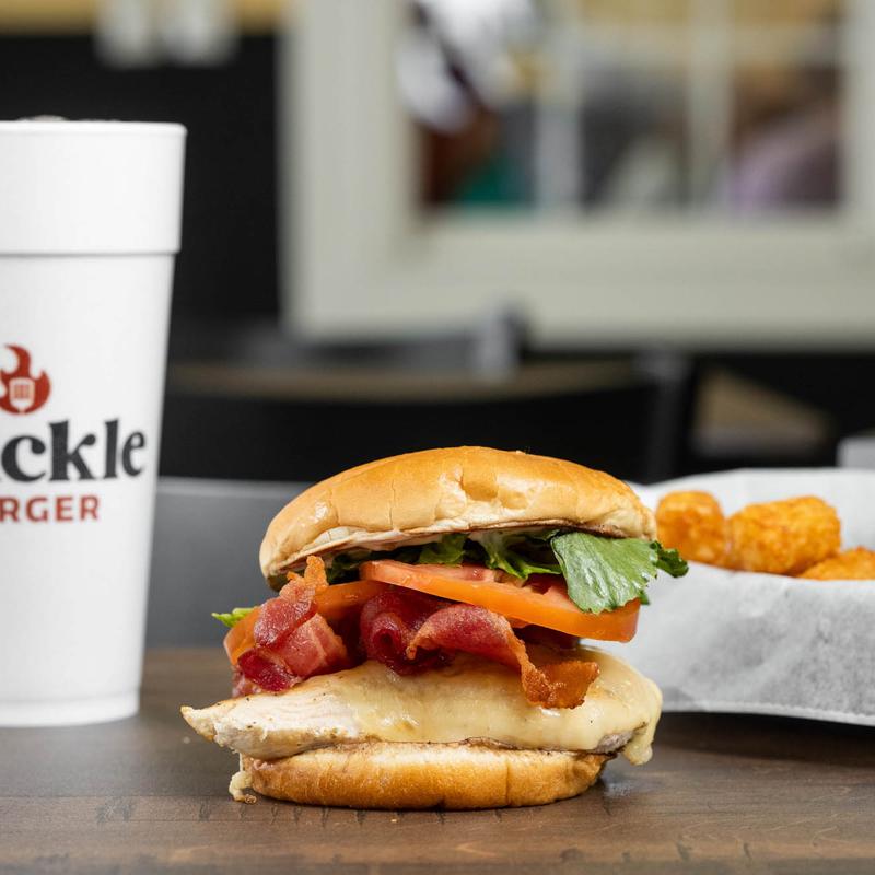 A 5 oz grilled or fried chicken breast topped with provolone cheese and pickles and drizzled in house-made honey.